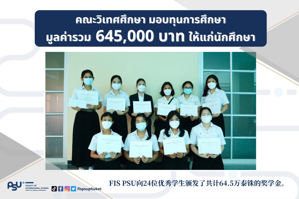 2022年2月24号星期四, FIS PSU向24位优秀学生颁发了共计64.5万泰铢的奖学金。