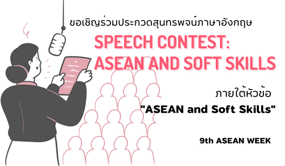 ขอเชิญนักเรียนระดับชั้นมัธยมศึกษาตอนปลายร่วมประกวดสุนทรพจน์ภาษาอังกฤษ Speech Contest: ASEAN and Soft Skills ความยาว 3 นาที
