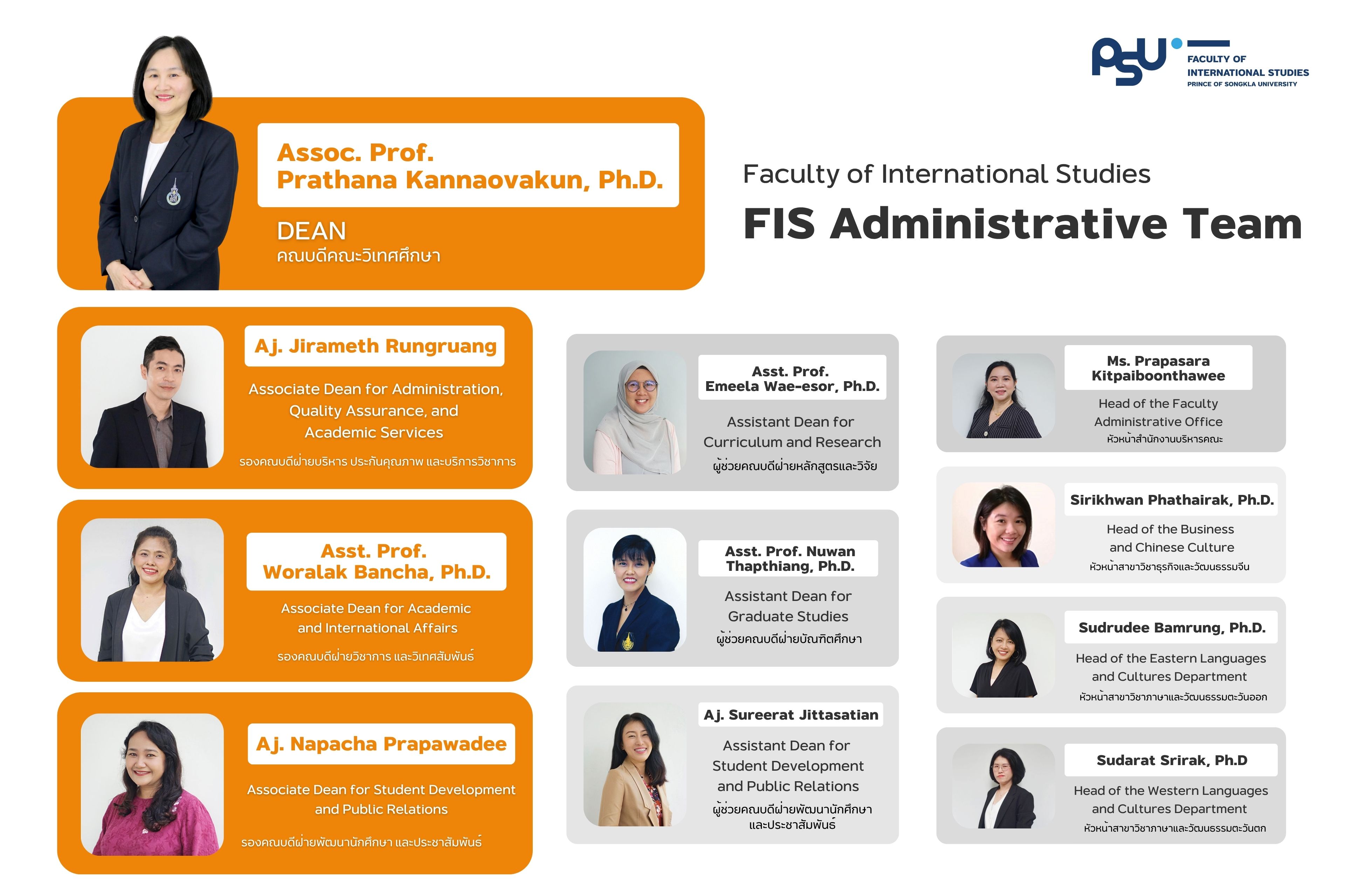 - รองคณบดีฝ่ายบริหารและประกันคุณภาพ คณะวิเทศศึกษา ประธาน