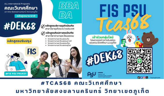 #Dek68 คณะวิเทศศึกษา ม.อ.ภูเก็ต เข้าร่วมกลุ่มไลน์ได้เล้ยย ไม่พลาดทุกข่าวการรับสมัครของคณะวิเทศศึกษา!